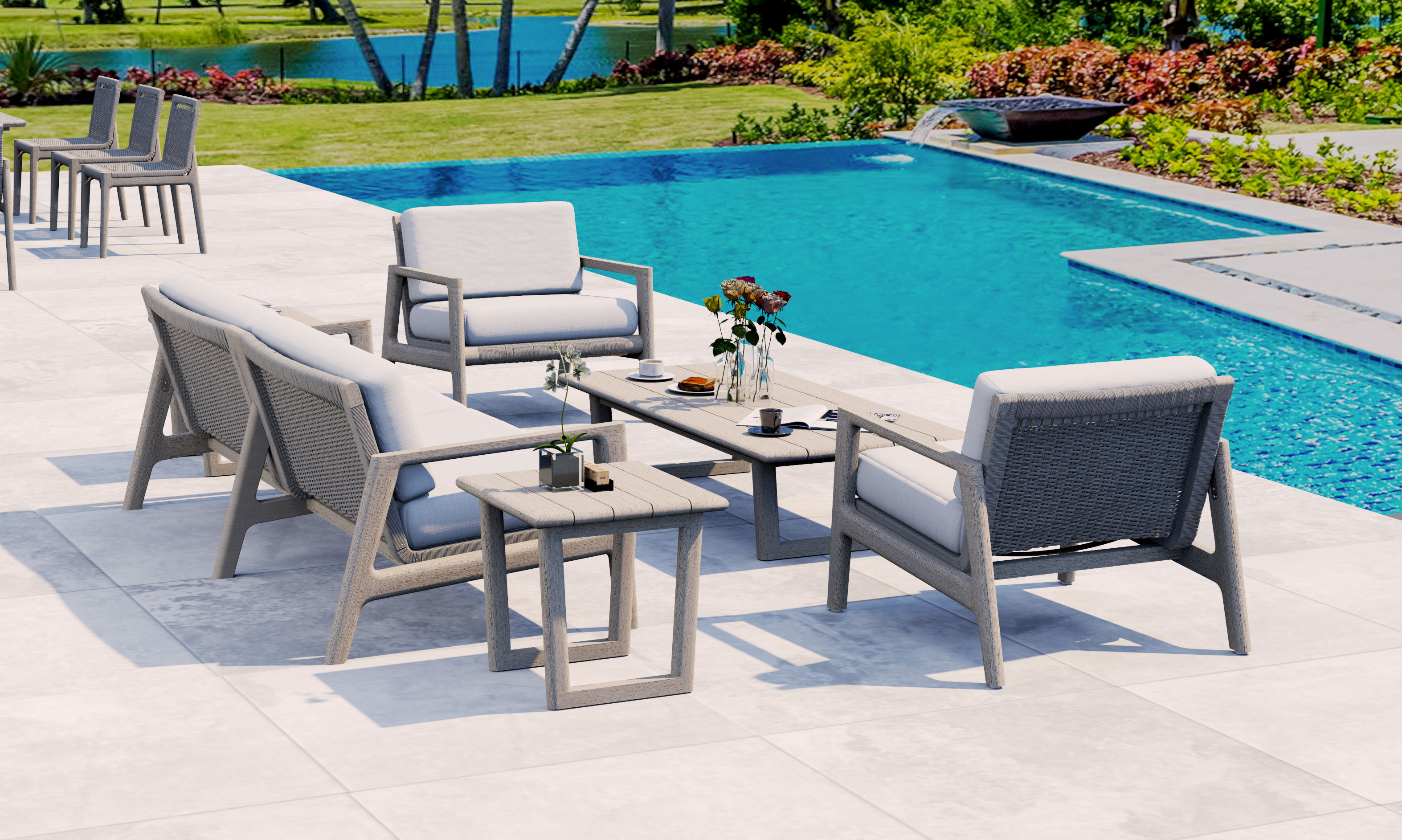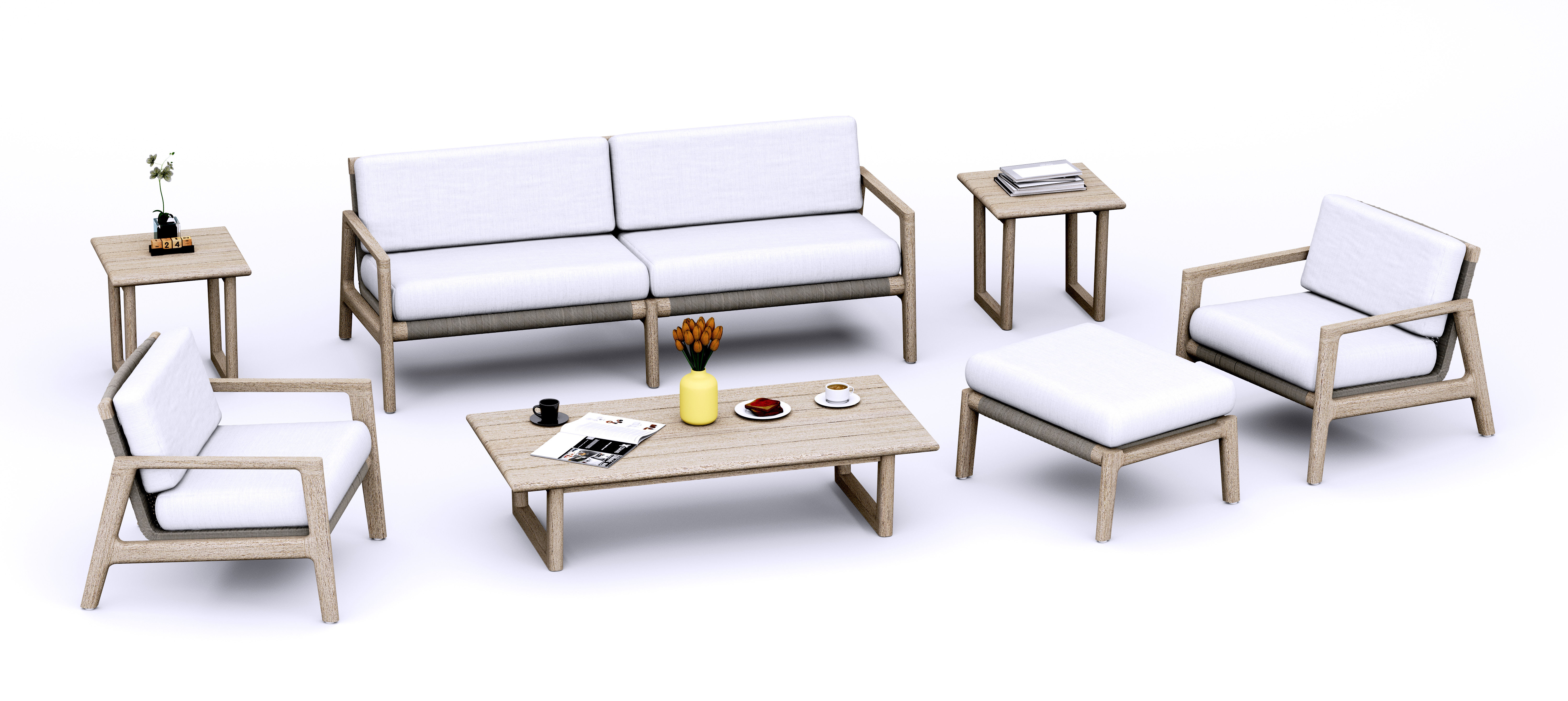 The design of the Sofa Collection of teak armchairs, coffee, and side tables is inspired by the lifestyle of casual luxury that evokes the carefree style of a bygone era. Its generous proportions and attention to detail easily allows it to blend well with both traditional and modern styles. The side and coffee teak tables in the collection have been specifically designed to enable the chairs to beautifully complement the chairs in any number of arrangements. The Akyee Sofa Collection has been thoughtfully designed to look pleasing from any angle, including the back.