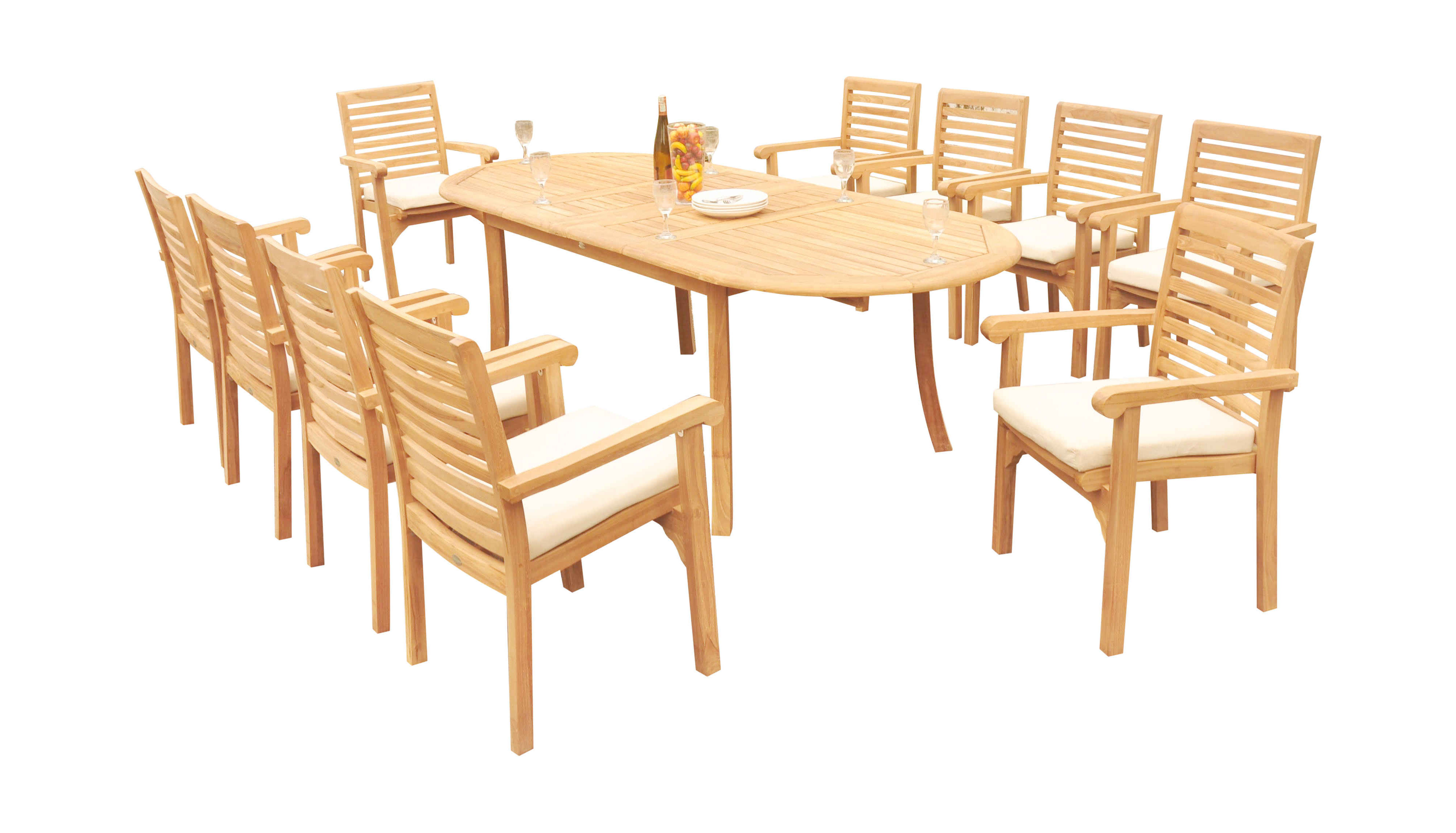 11 PC Dining Set - 94" Double Extension Oval Table & 10 Hari Stacking Arm Chairs