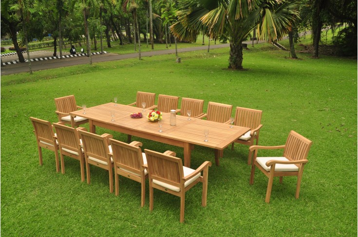 13 PC Dining Set - 122" Atnas Rectangle Table & 12 Napa Stacking Arm Chairs