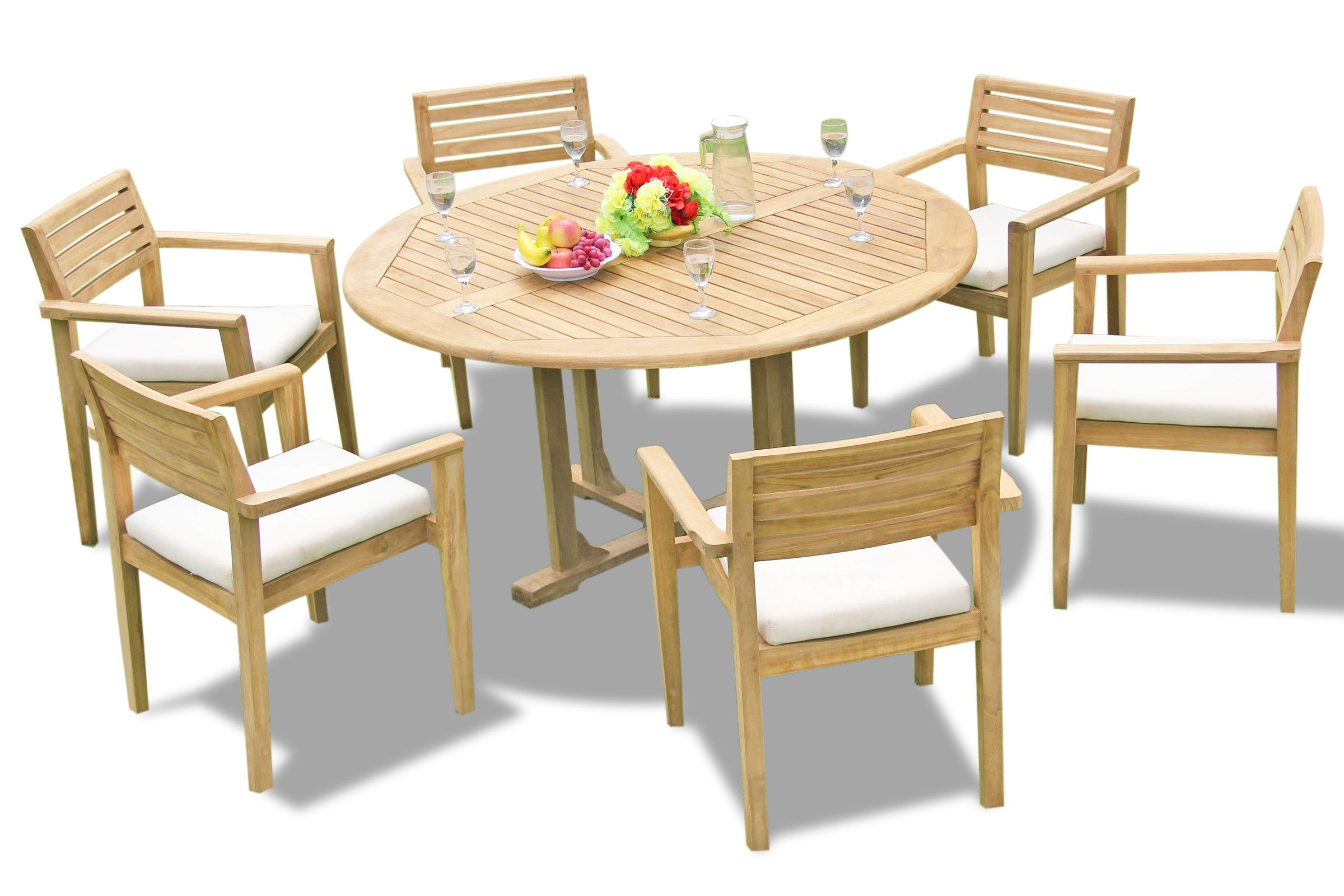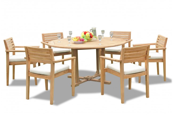 7 PC Dining Set - 60" Round Table & 6 Montana Stacking Arm Chairs