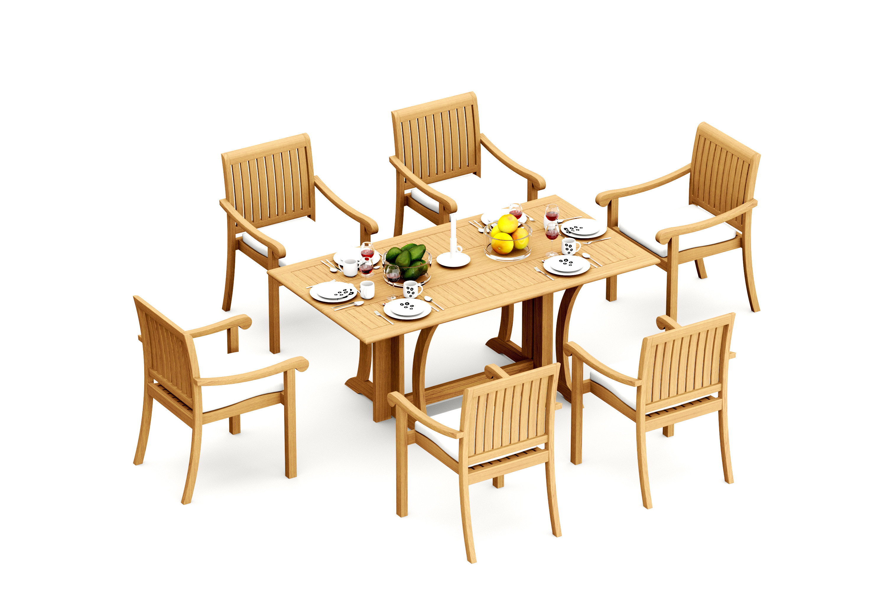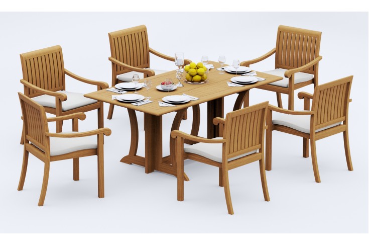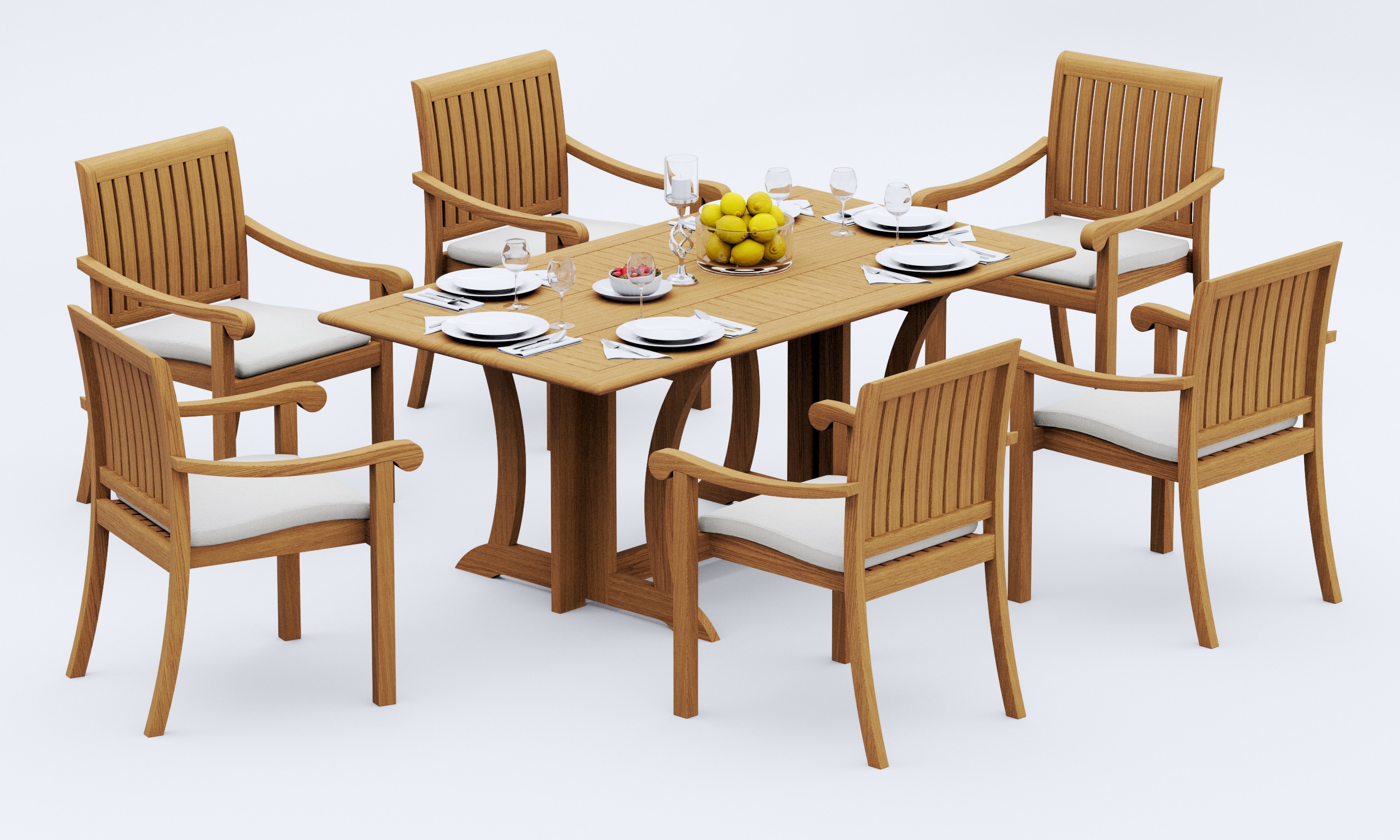 Crafted of top-quality premium teak, our set is designed to weather the elements in style. The dense, fine-grained teak wood is rich in natural oils, making it both durable and moisture resistant. Our teak wood is certified to withstand the rigors of adverse climates, however, because of Teak's well known micro-smooth finish and quality craftsmanship, many use our furniture indoors as well. Rich in oil, finely grained, and precisely fashioned with mortise-and-tenon joinery.