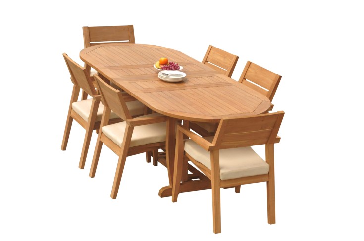 Crafted of top-quality premium teak, our set is designed to weather the elements in style. The dense, fine-grained teak wood is rich in natural oils, making it both durable and moisture resistant. Our teak wood is certified to withstand the rigors of adverse climates, however, because of Teak's well known micro-smooth finish and quality craftsmanship, many use our furniture indoors as well. Rich in oil, finely grained, and precisely fashioned with mortise-and-tenon joinery.