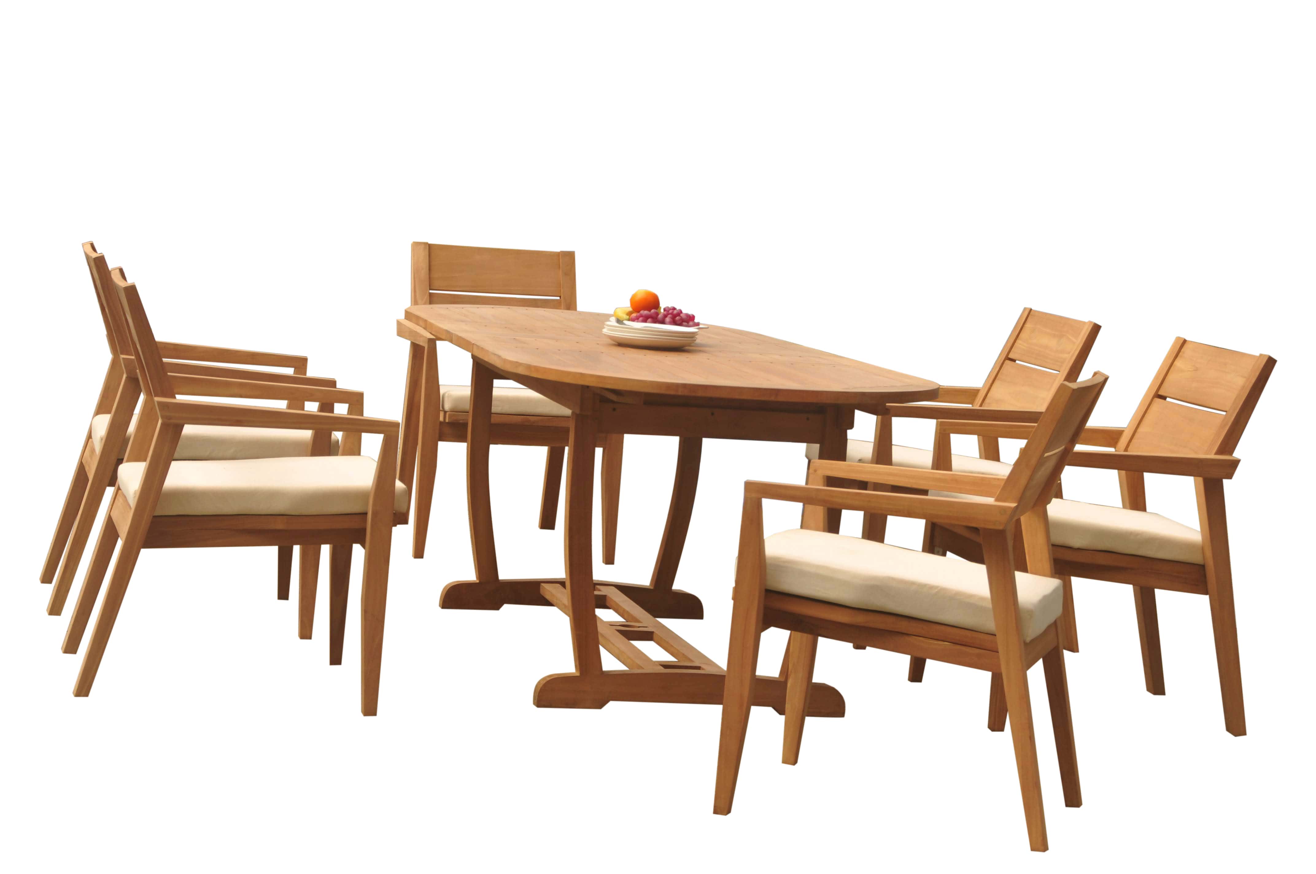 7 PC Dining Set - 94" Double Extension Masc Oval Table & 6 Cellore Stacking Arm Chairs