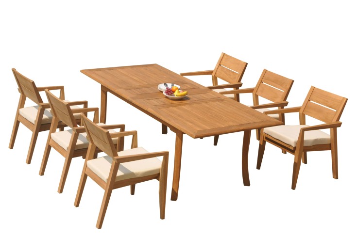 Crafted of top-quality premium teak, our set is designed to weather the elements in style. The dense, fine-grained teak wood is rich in natural oils, making it both durable and moisture resistant. Our teak wood is certified to withstand the rigors of adverse climates, however, because of Teak's well known micro-smooth finish and quality craftsmanship, many use our furniture indoors as well. Rich in oil, finely grained, and precisely fashioned with mortise-and-tenon joinery.