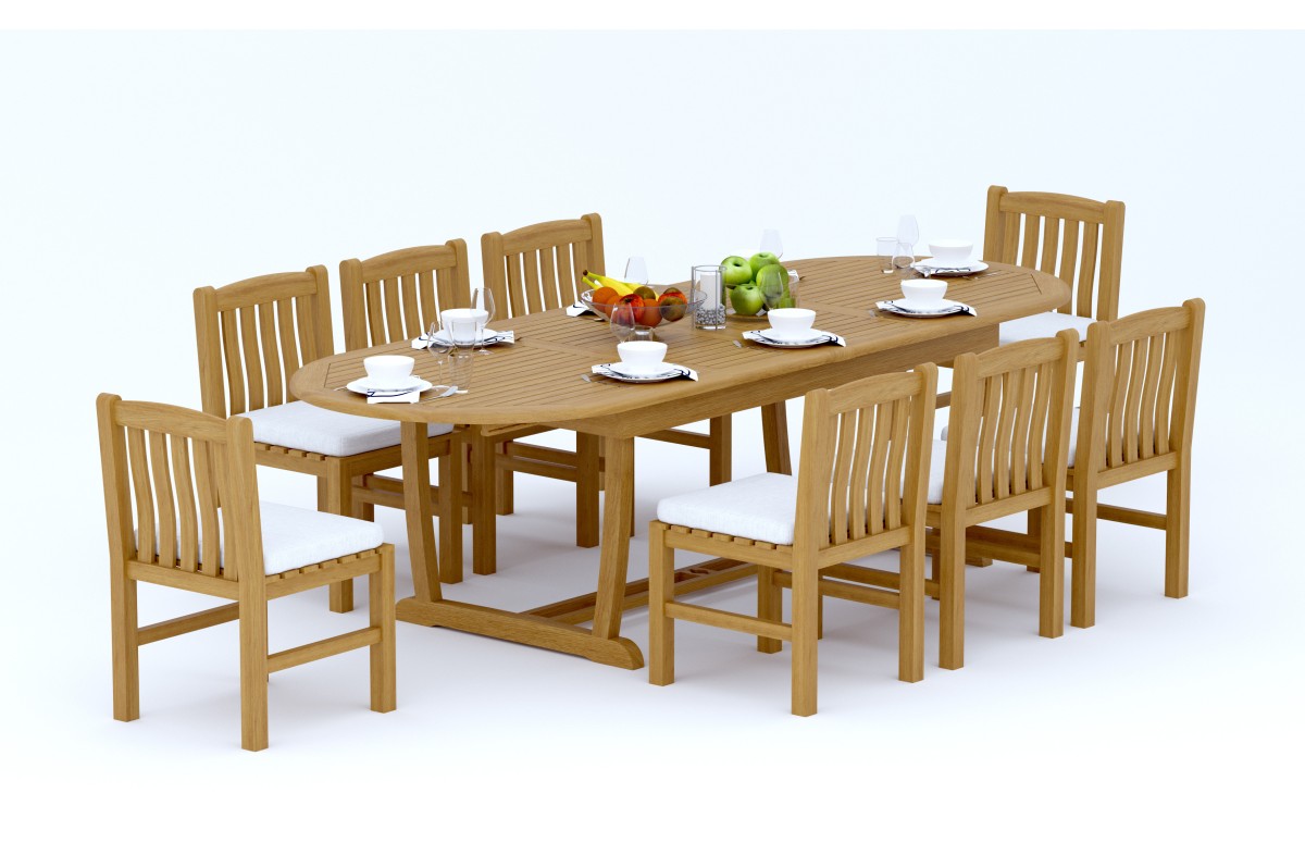 9 PC Dining Set - 117" Double Extension Masc Oval Table & 8 Devon Armless Chairs
