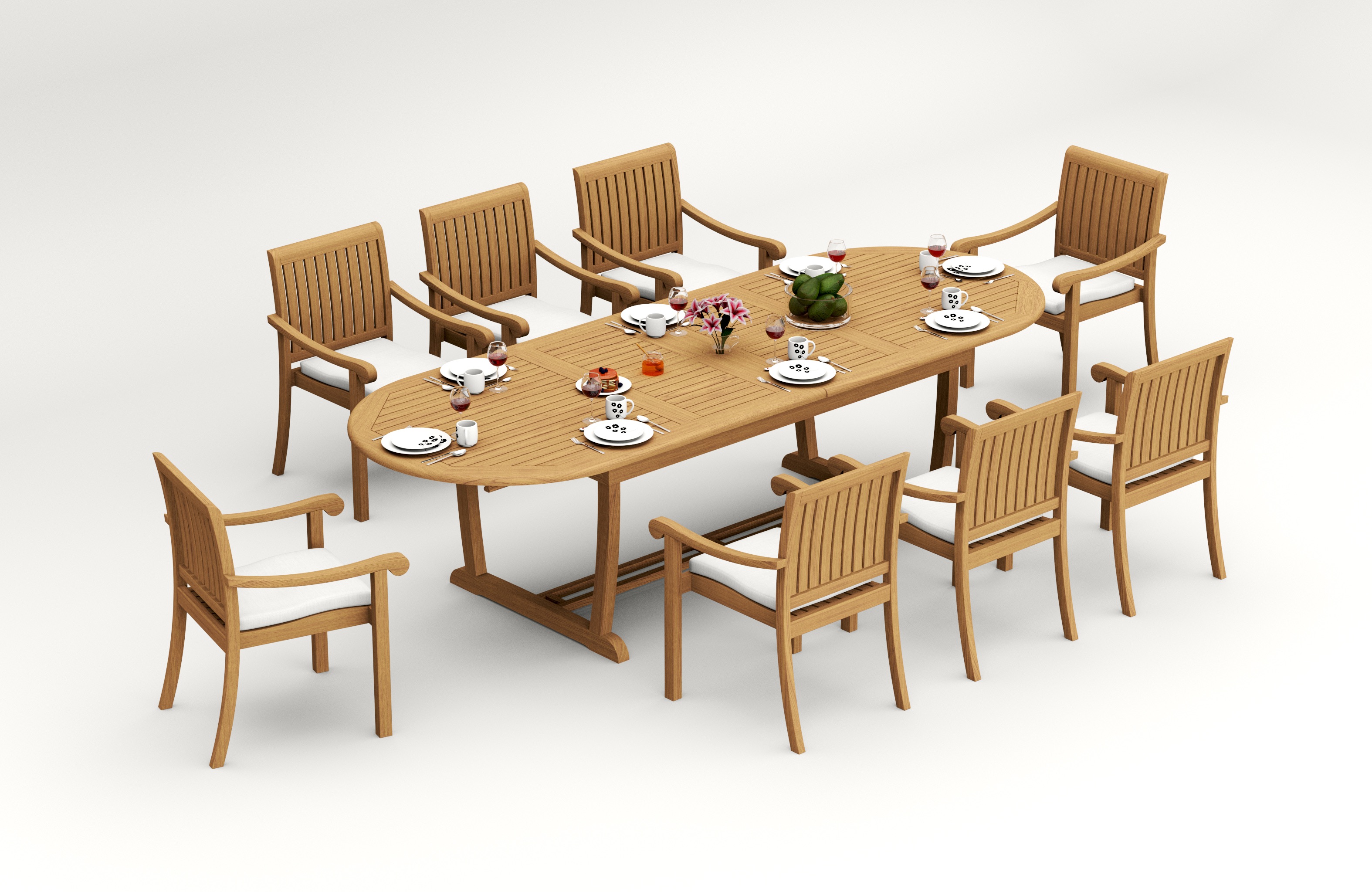 9 PC Dining Set - 117" Double Extension Masc Oval Table & 8 Napa Stacking Arm Chairs