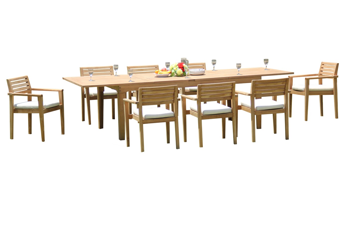 Using only premium quality, straight-grained and "knot-free" grade 'A' teakwood, every piece of lumber is carefully inspected before they are selected for furniture making. Our kiln drying process which takes several weeks, eliminates cracking, splitting and warping of the wood, enabling the construction of tight joints with strict tolerances. The furniture is then progressively hand sanded, polished and buffed with finer grits of sandpaper until we reach that trademark silky smooth finish. The natural finish looks beautiful and feels great to the touch, requiring no sealers or finish.