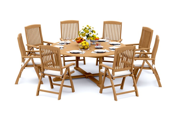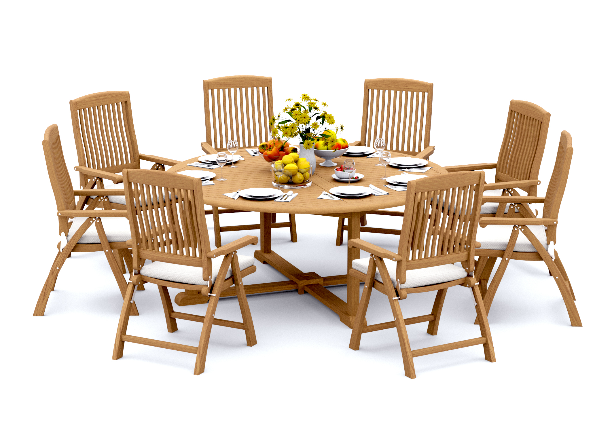 All of our Teak Dining Sets arrive to you in their natural, smooth sanded state. Quality Teak furniture will last 75 years, outdoors and untreated due to the naturally occurring rubber and oil content present in the wood itself. These natural characteristics repel moisture and is the primary reason teak wood is used heavily in the marine industry. Rich in oil, finely grained, and precisely fashioned with mortise-and-tenon joinery.