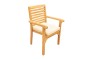 Our Teak Stacking Armchair is constructed with ample amounts of Grade A teak wood: The seat and back have numerous, closely placed, vertical slats that are gently arched for comfort. Wide arms accommodate for a variety of occupant body-types. The Teak Stackable Armchair will stack for ease of storage in limited spaces. Matches all standard height Teak Tables.They are manufactured to a standard that is suitable for residential or commercial applications and the convenience for easy storage.