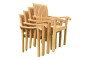 Our Teak Stacking Armchair is constructed with ample amounts of Grade A teak wood: The seat and back have numerous, closely placed, vertical slats that are gently arched for comfort. Wide arms accommodate for a variety of occupant body-types. The Teak Stackable Armchair will stack for ease of storage in limited spaces. Matches all standard height Teak Tables.They are manufactured to a standard that is suitable for residential or commercial applications and the convenience for easy storage.